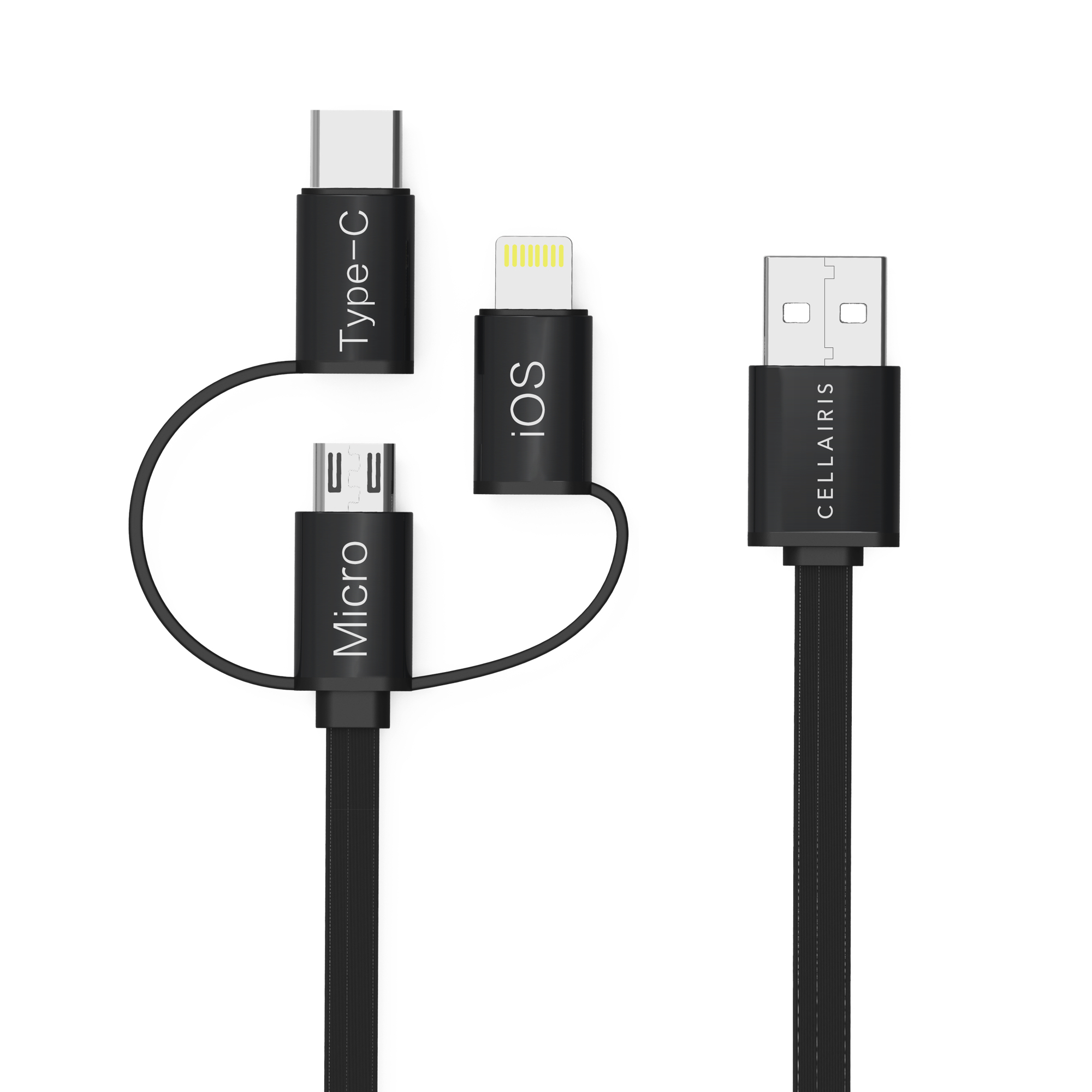 The Cellaris 3-in-1 Flat Cable offers versatile charging and data transfer with three connectors in one sleek, durable flat design. Compatible with multiple devices, it’s perfect for on-the-go convenience.