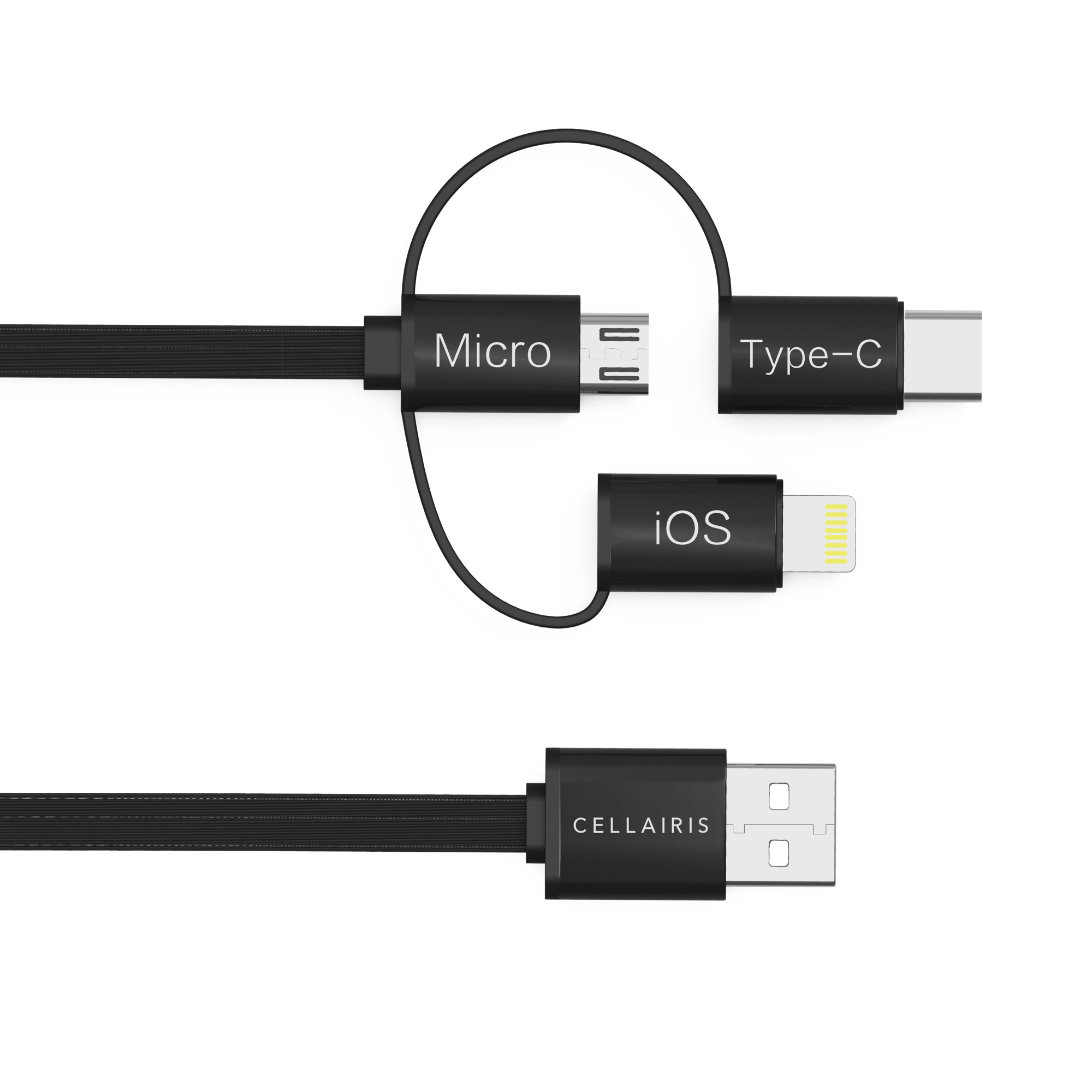 Cellaris 3-in-1 Flat Cable 1M- Black - M-FCI4037