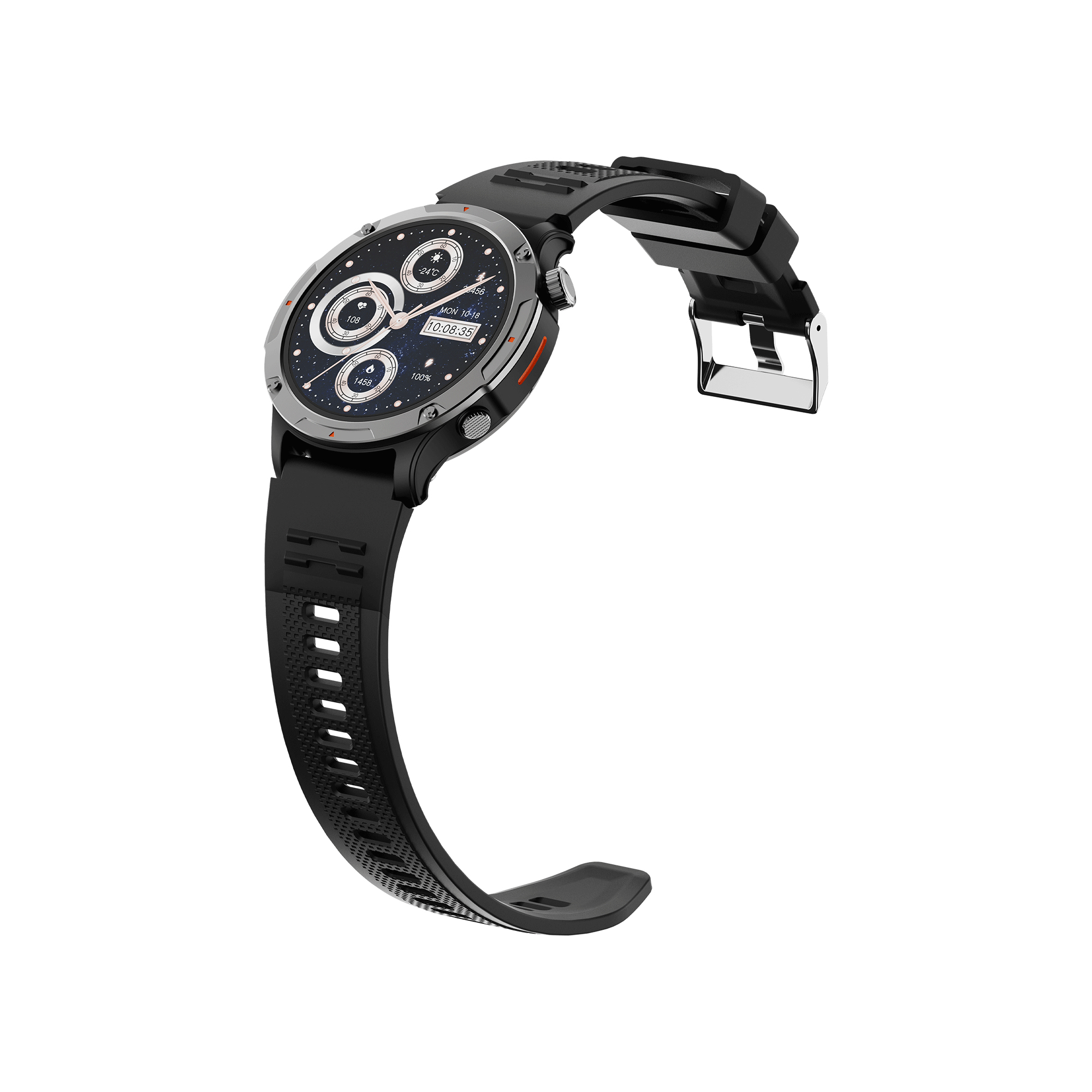 Platinum EXTRO G GPS Smart Watch features built-in GPS and Bluetooth Calling for seamless connectivity on the go. Designed in a premium gun metal finish, it offers smart tracking, fitness monitoring, and reliable performance for everyday use and active lifestyles.