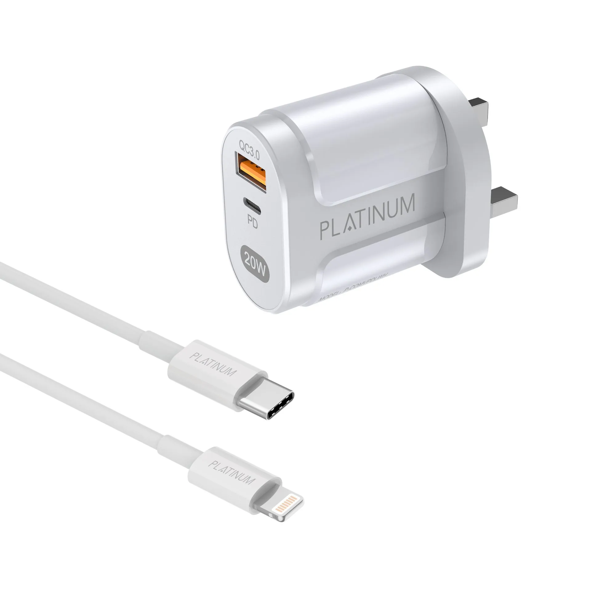 Platinum VITAL Series PD Wall Charger + PD Cable C-L - White - P-COMVPDLWH